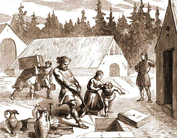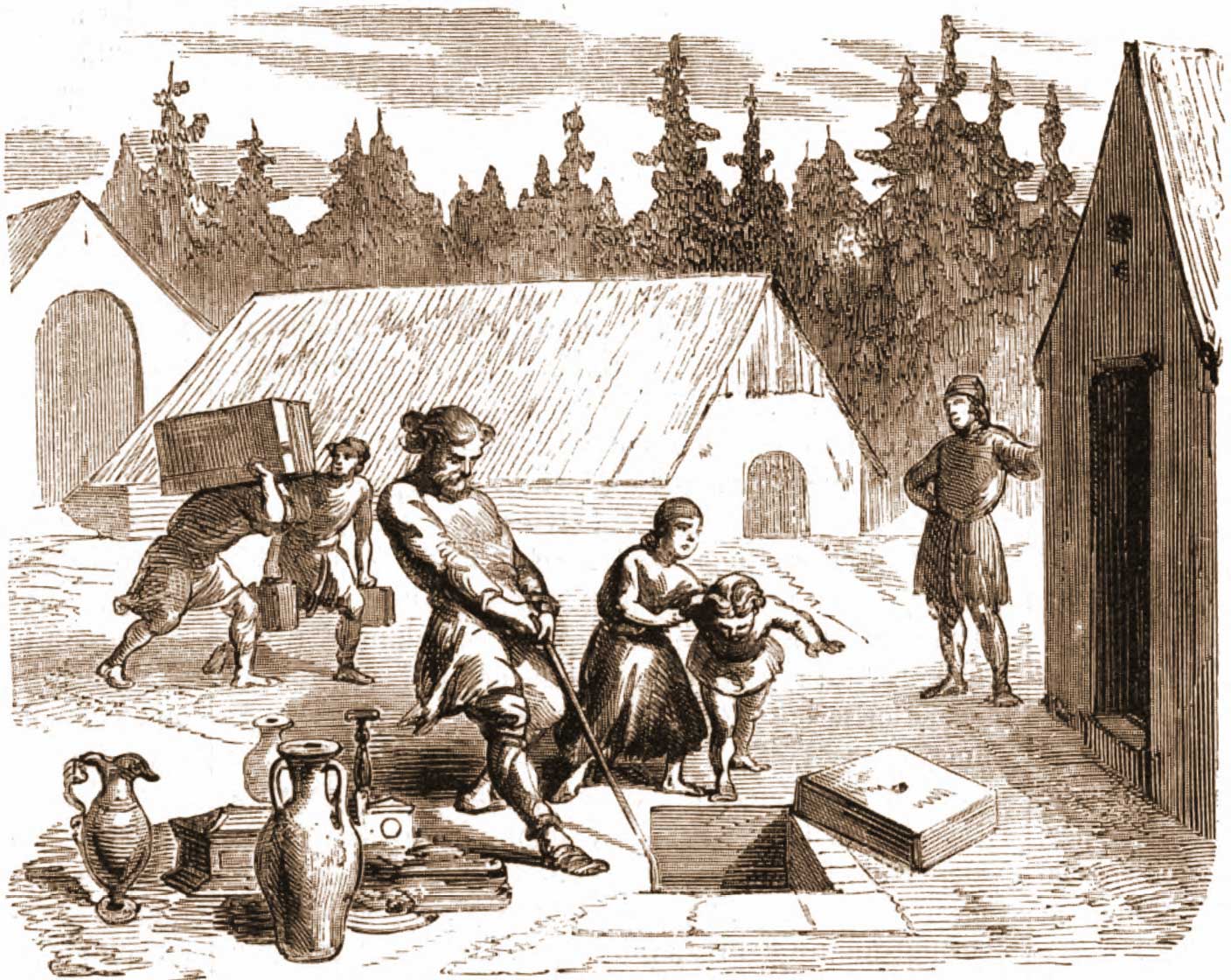 > Сяляне хаваюць каштоўныя рэчы (гравюра)