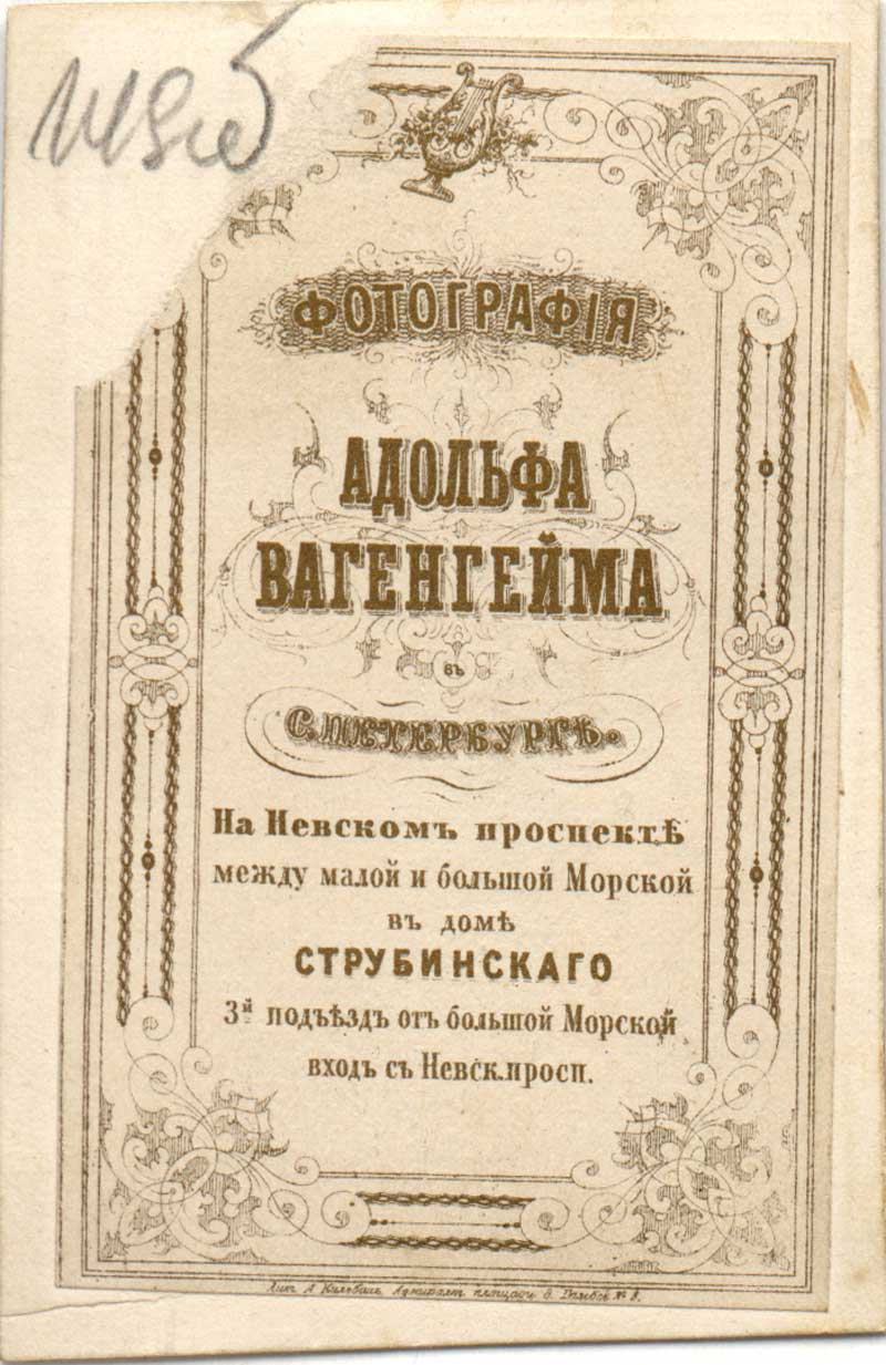 | Альфрэд Ромер Пецярбург. Фотамайстэрня А. Вагенгейма. (LVIA, f. 439, ap. 1, b. 148, l. 149-149 v.) | ||