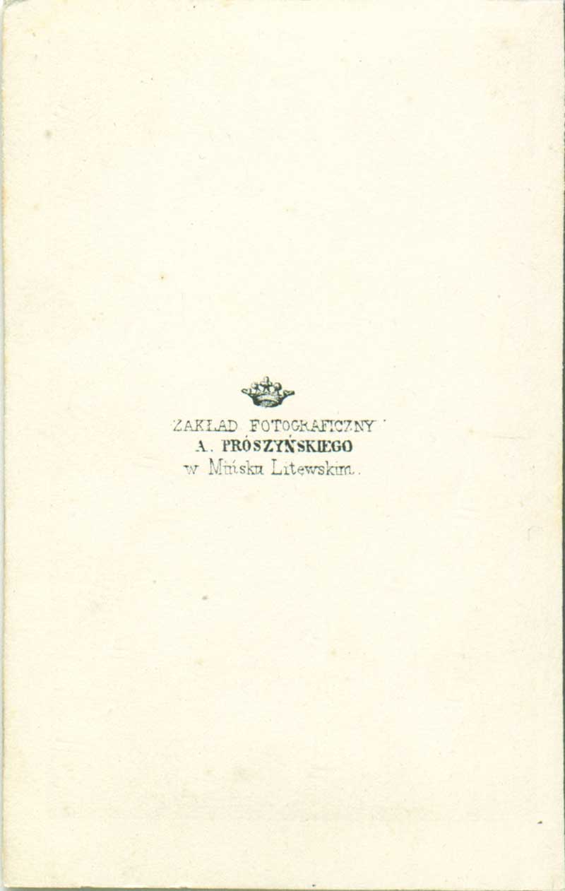 | Валовіч Канец 50-х – 60-я гг. ХІХ ст. Мінск. Фотамайстэрня А. Прушынскага. (LVIA, f. 439, ap. 1, b. 147, l. 57-57 v.) | ||