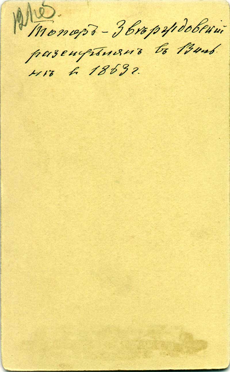 [38] BN. F. 10452/W; F. 10467/W; F. 10470/W; F. 10474/G; Powstanie styczniowe i zesłańcy syberyjscy. Katalog fotografii ze zbiorów Muzeum Historycznego m. st. Warszawy. Сz. II. S. 19, 323.