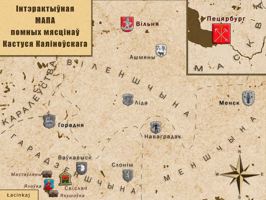 > Помныя мясціны К. Каліноўскага (інтэрактыўная мапа)