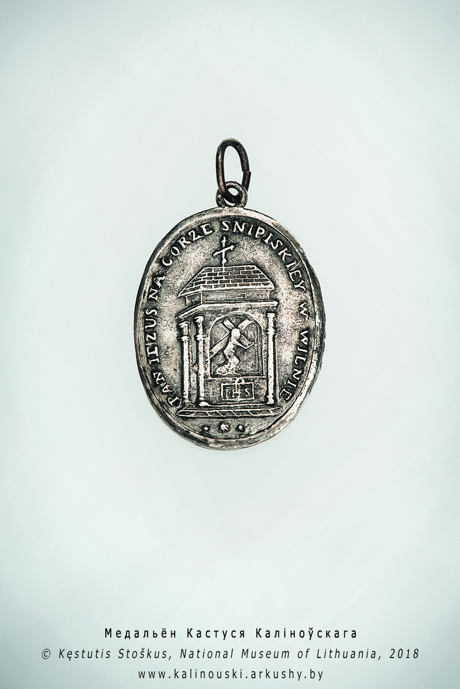 Рэліквія знойдзеная віленскімі археолагамі ў 2017 годзе ў парэштках Кастуся Каліноўскага падчас раскопак адкрытага раптоўным апоўзнем на Гары Гедзіміна пахавання пакараных смерцю паўстанцаў. На аверсе медальёна выява Вастрабрамскай Божай Маці, на рэверсе – выява капліцы на віленскім прадмесці Сніпішкі (зараз святыня не існуе)