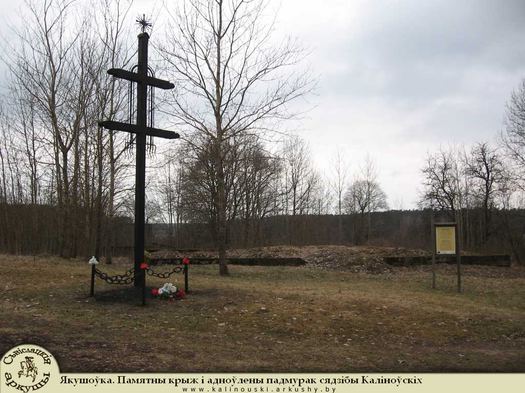 Памятны крыж і адноўлены падмурак сядзібы Каліноўскіх
