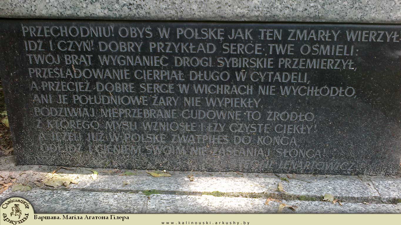 Падзівіся на невычэрпную цудоўную гэтую крыніцу, з якой цяклі думкі ўзнёслыя і слёзы чыстыя! А калі ўжо дарэшты ў Польшчы сумняешся, адыдзіся і ценем сваім не засланяй сонца! Тэафіл Ленартовіч.
